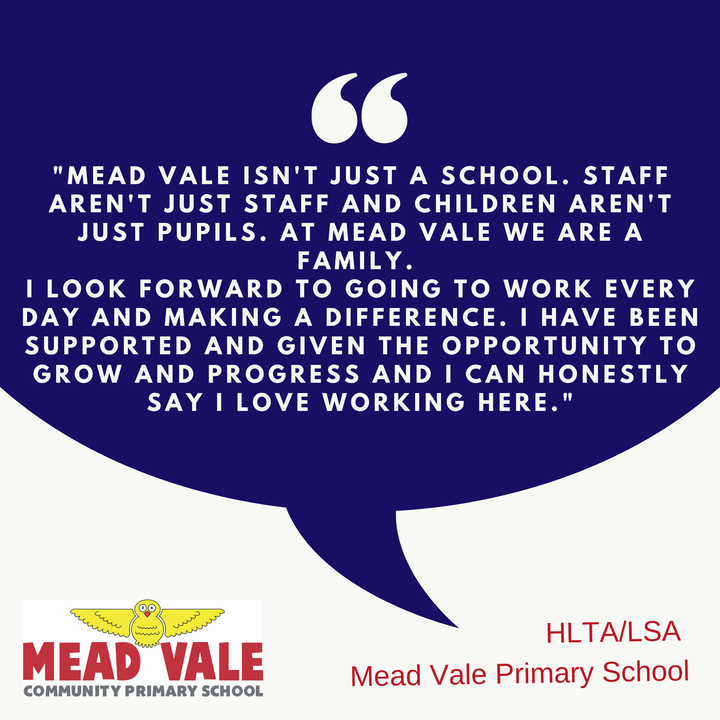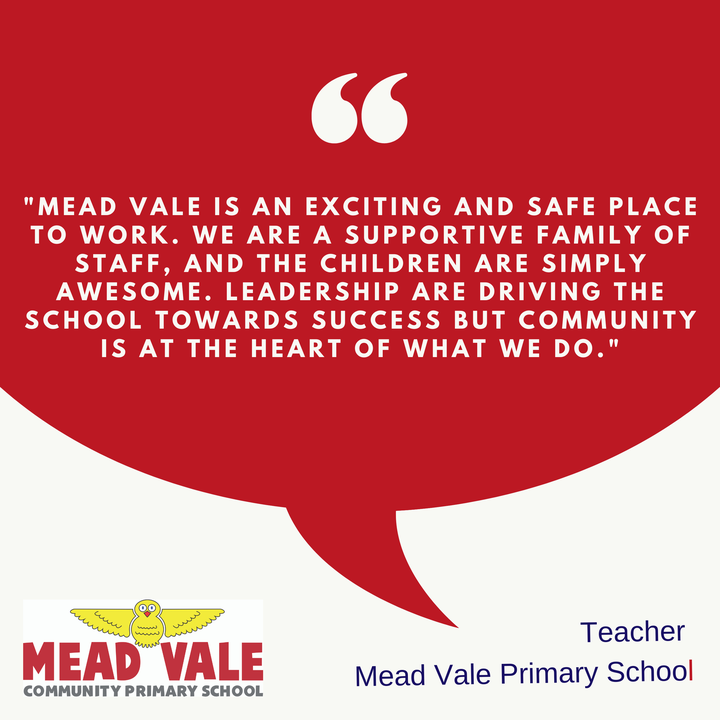 Mead Vale Primary School can offer you a place where you will feel valued, where you will grow professionally and personally, a place where you will make friends and make a difference to the community we serve.
